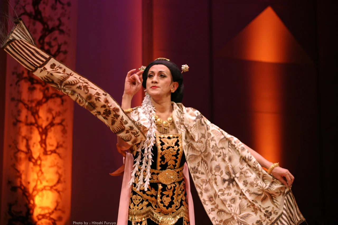 Didik Nini Thowok is the director of the Vocational Dance Education of Natya Lakshita Institute, the Didik Nini Thowok Foundation, and the Didik Nini Thowok Entertainment, and has has performed for dignitaries throughout the world. His unique style combines classical, folk, modern, and comedic dance, as well as various forms stemming from topeng (mask dance), Sudanese, Cirebon, Balinese, and Central Javanese traditions.